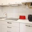 L’appartamento comprende un ampio soggiorno, che offre spazio extra per il relax. La cucina, anch’essa separata, è dotata di tutti gli elettrodomestici necessari per preparare pranzi e cene. La camera da letto è spaziosa con un letto matrimoniale, un ampio bagno dove troverete i kit di cortesia (shampoo/bagnoschiuma) e un asciugacapelli.