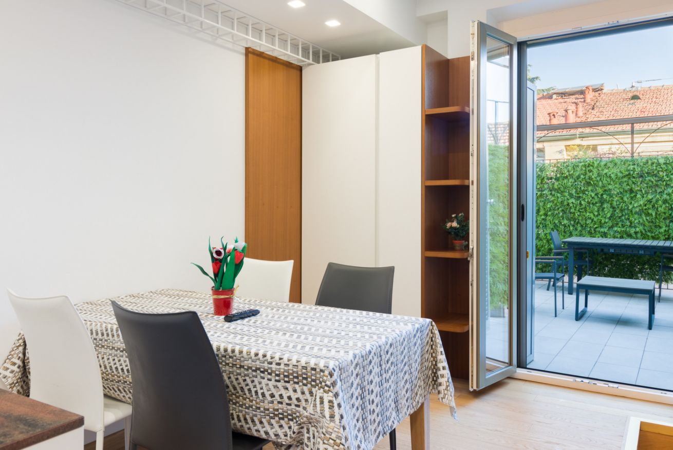L’appartamento può comodamente ospitare 4 persone. Viene affittato tutto intero, senza condivisione dello spazio.
